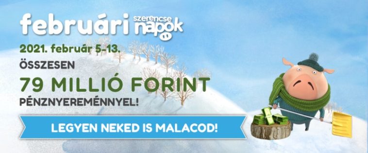 Februári szerencsenapok nyereményjáték 2021 – Legyen neked is malacod: a játék február 13-ig tart.