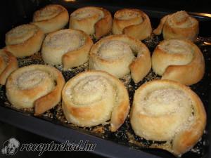 Hozzávalók: A tésztához: 3 darab tojássárgája 10 dkg porcukor 3 dkg élesztő 1 dl tej 1 dl olaj kevés cukor 30 dkg liszt 1 csomag vaníliás cukor 2 evőkanál rumaroma A töltelékhez: 10 dkg vaj 10 dkg porcukor 3 dkg őrölt mandula 3 dkg barna nádcukor A bevonathoz: 1 dl meleg tej 2 evőkanál cukor […]