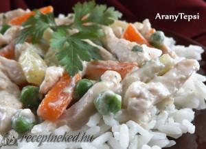 Hozzávalók: 1 nagy csirkemell filé 1 nagy sárgarépa 1 kisebb karalábé 1 merék zöldborsó 1 közepes fej vöröshagyma 1 ek liszt 2 dl natúr joghurt 1 ek tejföl 1 kis csokor petrezselyemlevél 1 kk só 1 nagy csipet bors 2 ek olaj Elkészítése: A megtisztított húst vékony csíkokra vágjuk és kicsit hagyjuk lecsepegni. Minden zöldséget […]