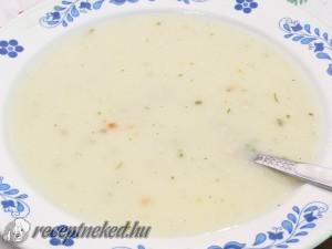 Hozzávalók: 1 fej fokhagyma 1 fej vöröshagyma 5 dkg vaj 1 kanál liszt 7 dl alaplé vagy 1 leveskocka 200 g főzőtejszín kevés petrezselyemzöld só, frissen őrölt bors kevés őrölt szerecsendió Elkészítése: A vöröshagymát apróra daraboljuk, majd a vajon megdinszteljük. A fokhagymákat néhány gerezd kivételével rányomjuk és összekeverjük. Megszórjuk liszttel, vigyázva, hogy le ne égjen […]