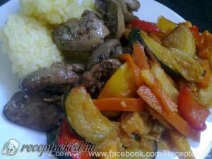 Hozzávalók: 500 g csirkemáj 6 gerezd fokhagyma zsír őrölt bors majoránna só 1 darab cukkini 1 darab sárgarépa fehér retek (kb.10 cm) 1⁄2 darab kaliforniai paprika (piros) 1⁄2 darab kaliforniai paprika (sárga) 1 darab újhagyma 1 tk szójaszósz 1 tk csiliszósz olaj 1 ek keményítőliszt 50 ml víz Elkészítése: A máj elkészítése: A májat megtisztítjuk […]