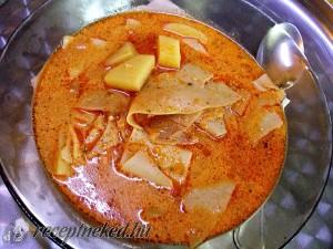 Hozzávalók: 1 nagy fej vöröshagyma 6 gerezd fokhagyma 20 dkg lebbencs tészta 3 db nagyobb szem burgonya 1 kis pohár tejföl 1/2 dl étolaj 1 evőkanál fűszerpaprika 1 teáskanál ételízesítő petrezselyemzöld kevés őrölt bors pici só 1-1 db paradicsom és zöldpaprika Elkészítése: Egy edénybe beleöntjük az étolajat és a kb. evőkanál nagyságúra tördelt lebbencstésztát, majd […]