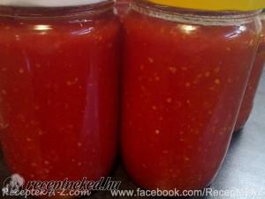 Hozzávalók: 4 kg paradicsom 100 g só 3 fokhagyma (3 fej fokhagyma gerezdre szedve) Elkészítése: A paradicsomot megmossuk, a rossz részeket eltávolítjuk, nagyobb darabokra vágjuk, majd feltesszük főzni. Forráskor elzárjuk alatta a gázt, majd kézi mixerrel pépesítjük. Hozzákeverjük a megtisztított, áttört fokhagymákat és a sót. Felforraljuk, és tiszta üvegekbe tesszük, lezárjuk, majd fejre állítva száraz […]