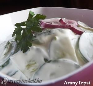 Hozzávalók: 1 kígyóuborka 1 nagy csipet só 200 g tejföl 1 nagy ek majonéz 2 tekerés bors 2 nagy gerezd fokhagyma Elkészítése: A megtisztított uborkát vékony fél karikára vágjuk, megszórjuk sóval, jól összeforgatjuk. Fél óra pihentetés után kinyomkodjuk a levét. A tejfölt elkeverjük a majonézzel, borssal, zúzott fokhagymával és beleforgatjuk az uborkát. Sült húsokhoz kiváló kísérő. […]