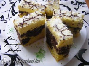 Hozzávalók: Tészta: 5 tojás 25 dkg cukor 35 dkg liszt 1 csomag sütőpor 1 citrom 1 dl étolaj 2 dl tej kakaópor Krém: 10 dkg kókuszreszelék 4 dl tej 1 csomag vaníliás pudingpor 2 ek cukor 2 dl tejszín 1 habfixáló 4 dkg porcukor Tetejére: kókuszreszelék olvasztott csokoládé Elkészítése: Tészta elkészítése: A tojásokat […]