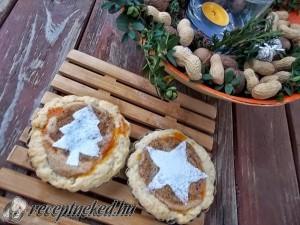 Hozzávalók: Tészta: 60 dkg liszt 2 ek tejföl 1 cs sütőpor 16-20 dkg cukor 30 dkg vaj vagy margarin 2 egész tojás csipet só 1 citrom reszelt héja 2 ek darált dió (elmaradhat) Töltelék: 1 üveg barack lekvár vagy dzsem (lehet kicsit kevesebb is) 15 dkg cukor 6 tojás 15 dkg darált dió Elkészítése: A […]