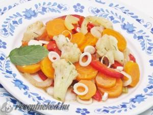 Hozzávalók: 1 fej káposzta 2 db kígyóuborka 5 db kápia paprika 1 fej karfiol 5 fej hagyma 1 csomag újhagyma 2 fej lilahagyma 1 csokor kapor 1 csokor petrezselyemzöld 5 db sárgarépa 1 kanál fekete bors 1 kávéskanál koriandermag 1 kávéskanál mustármag 3 kanál só 1 dl almaecet Elkészítése: Frissen készül, nem kell érlelni, dunsztolni, […]
