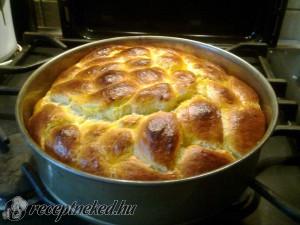 Hozzávalók: 50 dkg liszt 8 dkg vaj 2,5 dkg élesztő 2.5 dl langyos tej 8 dkg cukor 1 egész tojás + 1 tojássárgája 1 csapott tk só 50 dkg finomliszt 1 citrom héja 1 egész tojás a kenéshez tortaforma Elkészítése: 0,5 dl tejet langyosra melegítünk, elkeverünk benne (műanyag, vagy fakanállal, az élesztőhöz ne érjen fém) kb. […]