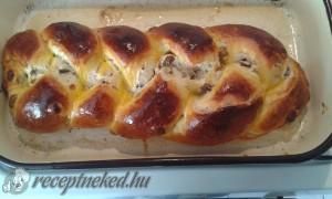 Hozzávalók: 1 kg liszt 5 dkg élesztő 10 dkg cukor 10 dkg vaj 5 dl tej 4 tojássárgája + 1 a kenéshez 20 dkg mazsola egy csipet só Elkészítése: A mazsolát beáztatjuk langyos vízbe, hogy megpuhuljon. Használhatunk rumot is, ha szeretnénk. Amíg puhul, elkészítjük a tésztát. 2 dl tejet meglangyosítunk, beleteszünk egy kanál cukrot, a […]