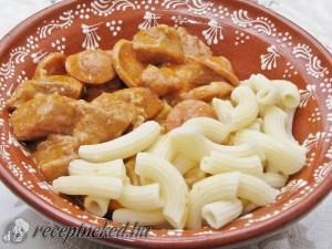 Hozzávalók: 50 dkg pulyka felső comb filé 1 nagy fej hagyma 2 pár virsli 1 kanál paradicsompüré 3 gerezd fokhagyma 1 teás kanál őrölt pirospaprika só, frissen őrölt bors 1 dl. száraz fehérbor kevés sertészsír Elkészítése: A húst vékony csíkokra szeljük. A hagymát apróra vágjuk, kevés zsíron megdinszteljük. Hozzátesszük a húscsíkokat, és addig pirítjuk, míg […]