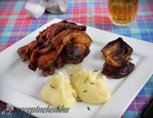 Hozzávalók: 1 bőrös csülök 1 csomag bacon 4 gerezd fokhagyma 4-5 db lila hagyma só őrölt bors őrölt kömény majoranna rozmaring 1 dl olaj 2 dl sör Elkészítése: A csülköt csontozzuk ki, majd a bőrét irdaljuk be. Az olajat keverjük össze ízlés szerint sóval, őrölt borssal, őrölt köménnyel, majorannával, rozmaringgal, és zúzott fokhagymával. Tegyük egy […]