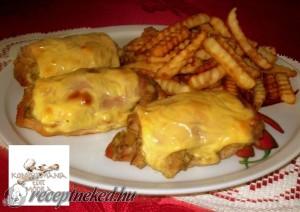 Hozzávalók: 4 szelet csirkemellfilé 1 mk bors 1 mk só A sütéshez: 2-3 dl olaj A feltéthez: 1 ek olaj 1 kisebb fej vöröshagyma petrezselyem zöldje 30 dkg vargánya gomba 2 zsemle só ízlés szerint őrölt bors ízlés szerint 2 gerezd zúzott fokhagyma 4 szelet gépsonka 4 szelet lapkasajt Elkészítése: A sütéshez az étolajat felforrósítjuk. […]