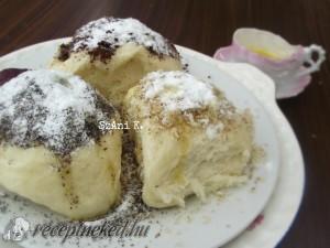Hozzávalók: 50 dkg liszt 2 dl langyos tej + kb. 0, 5 dl 3 dkg élesztő 2 ek cukor 1 egész tojás 1 tojássárgája 5 dkg vaj/margarin + 5-10 dkg a tálaláshoz 1 nagy ek tejföl 1 csipet só Elkészítése: A langyos tejben elkeverünk 1 ek lisztet, a cukrot, és belemorzsoljuk az élesztőt, majd felfuttatjuk. […]