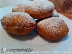 Hozzávalók: 200 g tejföl (min. 14%) 1 tojás 3 ek porcukor 0,5 csomag sütőpor 250 g sima liszt 1 ek rum (elhagyható) Elkészítése: Összekeverjük a tejfölt, a tojást, a cukrot, a sütőporos lisztet és a rumot. Lisztezett deszkán kb. 0,5 cm vastagra nyújtjuk, és 6 cm kör alakú formával kiszaggatjuk. Forró olajban megsütjük mindkét oldalán. […]