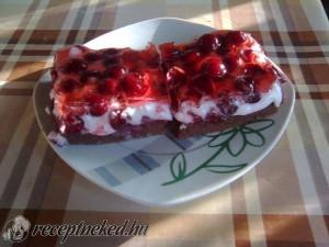 Hozzávalók: 5 tojássárgája 10 ek cukor 1 dl olaj 4 dl kefir 11 ek liszt 1 csomag sütőpor 3 ek kakaópor lekvár 5 tojásfehérje csipet só pár csepp citromlé 15 dkg cukor 1 üveg meggybefőtt (magozva) a befőtt leve 1 csomag tortazselé Elkészítés: Az 5 tojássárgáját kikeverjük a cukorral, az olajjal, és a kefirrel. A […]