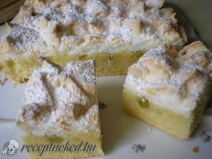 Hozzávalók: 1,5 dl tej 10 dkg porcukor 14 dkg vaj 4 db tojássárgája 28 dkg liszt 1/2 csomag sütőpor 25 dkg csemegeszőlő A habsipkához: 4 db tojásfehérje 5 dkg cukor 5 dkg porcukor A szóráshoz: 1 evőkanál (5 dkg) kókuszreszelék Elkészítése: Langyosítsuk meg a tejet, keverjük ki a vajat a cukorral, majd tegyük hozzá a tojássárgákat, […]