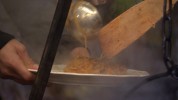 Sült gesztenye, kürtőskalács és káposztás sertéscomb bográcsban.