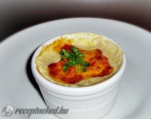 Hozzávalók: 4 adaghoz: 20 dkg afrikai harcsafilé 1 vöröshagyma 5 dkg vaj 1 ek liszt 2-3 dl tej sajt 1-1,5 dl tejszín só őrölt bors vaj zsemlemorzsa Elkészítése: A vöröshagymát megpucoljuk, és apróra felvágjuk. A filézett halszeletet kisebb darabokra felvágjuk. A nagyobb szuflé formákat vastagon kikenjük vajjal, majd megszórjuk zsemlemorzsával. Egy serpenyőben felhevítjük a vajat, […]