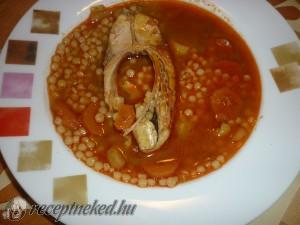 Hozzávalók: 1 kg hal vegyesen (kárász, keszeg, törpeharcsa, ponty) 2 fej vöröshagyma olaj 3 répa 1 petrezselyem gyökér 5 kisebb burgonya őrölt pirospaprika 2 halászlé kocka tarhonya víz só Elkészítése: A meghámozott és kockára vágott hagymát olajon megpirítjuk, megszórjuk pirospaprikával, és felöntjük vízzel. Ezután hozzáadjuk a feldarabolt zöldségeket, a halászlé kockákat, és elkezdjük főzni. Amikor […]