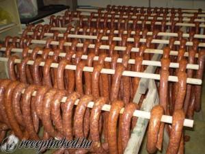 Hozzávalók: 10 kg vegyes sertés hús (arány 7 kiló sovány és 3 kg zsíros hús) 20 dkg édes darált piros paprika 10 dkg csípős darált paprika 10 dkg préselt fokhagyma 20 dkg só 3 zacskó őrölt kömény (1 zacskó 40 g) 20-25 méter sertés bél Elkészítése: A húst ledaráljuk s az összes hozzávalóval jól átdolgozzuk, […]