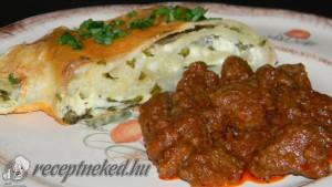 Hozzávalók: Hozzávalók a tésztához: 15 dkg átszitált liszt, fele rétes, fele sima 2 dkg zsír 1/2 tojás + 1 tojássárgája a kenéshez 1 dl meleg víz 1/2 kávéskanál 10%-os ecet 1/2 kávéskanál só olvasztott zsír a kenéshez A töltelékhez: 25 dkg juhtúró 10 medvehagyma levél 2 evőkanál tejföl 1 csapott evőkanál búzadara bors Elkészítése: A […]