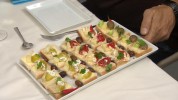 Tapas falatkák, Chillis guacamole, Gazpacho leves, Vega Paella, Gambas Pil Pil, málnás katalán krém