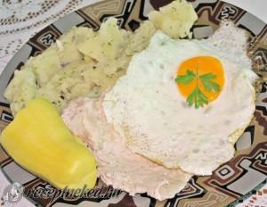Hozzávalók: 4 szelet hús (tarja, karaj, csirke vagy pulyka) 4 db tojás só őrölt bors kevés liszt olaj a sütéshez Elkészítése: A hússzeleteket kiklopfoljuk, megsózzuk, megborsozzuk mindkét oldalát, majd lisztbe forgatjuk. Kevés olajon mindkét oldalát, megsütjük. A hússzeleteket konyhai törlőre szedjük, és elkészítjük a serpenyőben a tükörtojásokat. Tanácsos csak az egyik oldalán sütni, hogy a […]