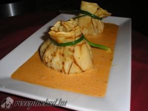 Hozzávalók: 400 g borjú hús 1 zöldpaprika 1 paradicsom 1 nagy fej hagyma 1 gerezd fokhagyma 1 kk enyhén csípős pirospaprika só 1 dl tejföl A palacsintához: 3 dl tej 2 tojás só bors 150 g finomliszt 2 ek olaj 8 szál metélőhagyma (snidling) Elkészítése: A borjúhúst megmossuk, apró kockákra vagdaljuk, majd félretesszük. A vöröshagymát […]