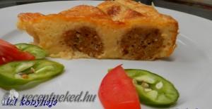 Hozzávalók: 3 tojás 150 g liszt 250 g tejföl 1 tk sütőpor 0,5 tk só 150 g sajt reszelve 500 g fagyasztott húsgombóc Elkészítése: A gombócokat a sütés előtt 15-20 perccel vegyük elő fagyasztóból, hogy félig felengedjenek. Ha saját magunk készítjük a gombócot akkor pont fordítva, tegyük be a fagyasztóba a felhasználás előtt. Az enyhén […]
