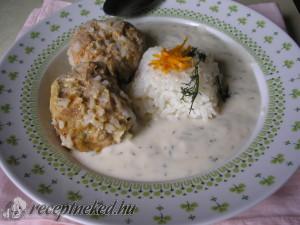 Hozzávalók: 40 dkg darált sertés- és marhahús 2 evőkanál rizs 1 vöröshagyma reszelve só bors 1 tojás 1 tk fűszerpaprika A szószhoz: 1 csokor friss kapor 2 dl tejföl 0.5 fej vöröshagyma reszelve só cukor ecet 2 evőkanál liszt 4 dl víz Elkészítése: A gombóchoz a húst, tojást, sót, reszelt vöröshagymát, borsot, rizst, paprikát összedolgozzuk, […]