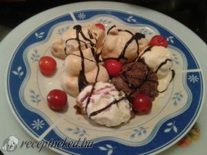 Hozzávalók: 3 tojásfehérje 6 ek cukor 1 csomag vaníliás cukor 1 csipet só 1 tk almaecet 2 tk keményítő Tálaláshoz, díszítéshez: csoki-, vanília- és mascarpone jégkrém/fagyi csokiöntet gyümölcs Elkészítése: A szoba hőmérsékletű tojásfehérjét csipet sóval, a cukorral és a vaníliás cukorral kemény habbá verjük (a cukrot apránként adagoljuk a habhoz), majd hozzákeverjük a keményítőt és […]