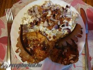 Hozzávalók: 8 szelet sertéskaraj 20 dkg húsos szalonna 1 kg burgonya finomliszt 15 dkg kockázott bacon 15 dkg juhtúró vagy tehéntúró 1 pohár tejföl 1 fej lilahagyma só bors fokhagyma pirospaprika Elkészítése: A szalonnát szeletekre vágjuk, tetejét bevagdossuk és kisütjük. Ezután a sertéshúst kiklpofoljuk, sózzuk, lisztben megforgatjuk és hirtelen forró zsiradékban megsütjük. Ha kiszedtük őrölt […]