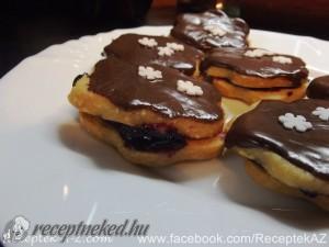 Hozzávalók: 280 g sima liszt 280 g vaj 150 g törökmogyoró 140 g porcukor 1 ek rum 1 csipet só 150 g lekvár (töltelék) 200 g étcsokoládé (máz) díszítő cukorkák Elkészítése: A tészta hozzávalóit gyors mozdulatokkal összegyúrjuk, és a tésztát betesszük a hűtőbe. Kb. egy óra múlva 3 mm vastagra nyújtjuk, és kiszaggatjuk őket. Sütőpapírral […]