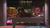 A két fiatal egy billiárd asztalon esik egymásnak, a háttérben pedig Las Vegas fényei teszik még emlékezetesebbé a légyottot.