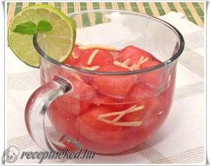 Hozzávalók: 1/4 görögdinnye, (kb. 1,5 kg.) néhány borsmenta levél, késhegynyi őrölt fahéj, kevés friss gyömbér reszelve, vagy nagyon apróra vágva, 1 lime leve. Esetleg bor, vodka, triple sec. Elkészítése: A dinnyéből kávés kanállal egyenletes lencséket faragok, vagy kisebb darabokra vágom, kimagozom. Késhegynyi őrölt fahéjjal, kevés reszelt gyömbérrel, lime, vagy citrom levével, és néhány aprított borsmenta […]