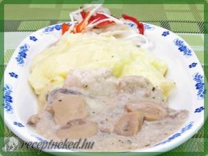 Hozzávalók: 2 csirkemell 5 dkg füstölt szalonna 1 fej vöröshagyma 10 dkg csiperke gomba 1 ek tejföl 1 dl száraz fehérbor 1 kiskanál aprított petrezselyemzöld só őrölt bors kevés olaj Elkészítése: A csirkemelleket középen bevágjuk, szétéhajtjuk, majd kikloffoljuk. Mindkét oldalán megsózzuk és kevés olajon megsütjük úgy, hogy az olajba 2 fokhagymagerezdet is belenyomunk. A megmaradt […]