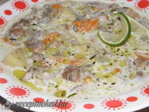 Hozzávalók: 1 kacsa 1 vöröshagyma 4 gerezd fokhagyma 1 tk borsikafű 2 szál sárgarépa 2 szál fehérrépa 1 karalábé 50 dkg gomba 4-5 krumpli 5 dl főzőtejszín 1 ek tárkony 1 ek tárkonyecet ízles szerint frissen őrölt bors ízlés szerint só Elkészítése: A kacsát megtisztítjuk, a felesleges hájat levágjuk róla, összekockázzuk, és egy nagy fazékban […]