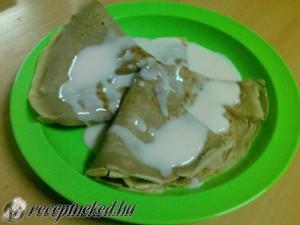 Hozzávalók: 7 tojás 7 dl tej 0,5 l szénsavas víz 70 dkg liszt csipet só 1 ek cukor 1 cs vaníliás cukor 1 púpos ek kakaópor 1 nagyobb alma reszelve 1 ek citromlé kevés olaj Elkészítése: A tojásokat a cukorral és a vaníliás cukorral habosra kevertem, majd hozzáadtam a tejet, sót és a lisztet. A […]