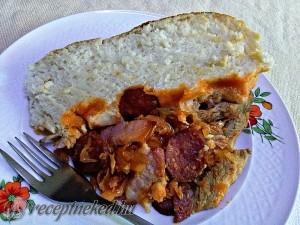 Hozzávalók: 1 kg savanyú káposzta 5 evőkanál étolaj 1 evőkanál fűszerpaprika 70 dkg sertés hús 1 fej vöröshagyma 2 babérlevél 3-4 gerezg fokhagyma 10-12 szem egészbors kicsi só 25 dkg kolozsvári szalonna 25 dkg füstölt kolbász A knédlihez: 1 kg sima liszt 50 g élesztő 1 evőkanál tejföl 1 teáskanál sertészsír melegvíz a dagasztáshoz Elkészítése: […]