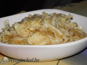 Hozzávalók: 1 fej káposzta 0,5 kg tészta 5 ek kristálycukor 1 kk őrölt bors 2 ek só 2 ek étolaj Elkészítése: A káposztát lereszeljük, besózzuk, és 30 percet állni hagyjuk. Egy nagyobb lábasban megpirítjuk a cukrot, majd ráöntjük az olajat és a jól kinyomkodott káposztát. Megszórjuk őrölt borssal, és puhára dinszteljük. Közben sós, lobogó vízben […]