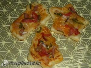 Hozzávalók: Tésztához: 50 dkg liszt 50 dkg rétesliszt 2,5 dl tej 0,5 l meleg víz 3 dkg élesztő só 2 dl olaj Feltéthez: ketchup oregánó kakukkfű vagy pizzakrém bármilyen szalámi paradicsom paprika lilahagyma zöldhagyma vagy más tetszés szerinti zöldségek sajt Elkészítése: A tészta hozzávalóit összekeverjük. A tejben pici cukorral az élesztőt futtatjuk előtte. Kelesztjük. Kelesztés […]
