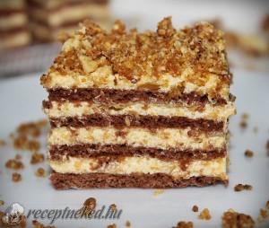 Hozzávalók: Tészta: 30 dkg liszt 15 dkg porcukor 2 ek kakaópor 5 dkg margarin 1 tojás (közepes) 1 kk szódabikarbóna kb 1 dl tej Krém: 20 dkg kristálycukor 25 dkg margarin 5 dkg porcukor 6 dl tej 2 cs vaníliás pudingpor 1 cs vaníliás cukor Elkészítése: A liszthez keverjük hozzá a szódabikarbónát, majd adjuk hozzá […]