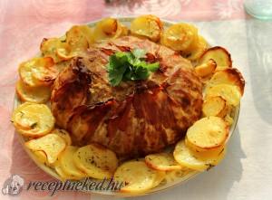 Hozzávalók: 1 kisebb karfiol só 2 db erőleveskocka Fasírt hozzávalói: 50 dkg darált hús 1 szelet szikkadt kenyér 1 db tojás 1 db vöröshagyma 3-4 gerezd fokhagyma só őrölt bors szerecsendió 20 dkg bacon a külső réteg beborításához Köret hozzávalói. 50 dkg krumpli só kakukkfű Elkészítése: Az egész karfiolt a leveskockával és sóval ízesített vízben […]
