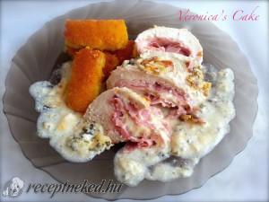 Hozzávalók: 8 szelet csirkemell 8 szelet sonka 8 szelet sajt (ementálit használtam) 15 dkg kéksajt 2-3 dl főzőtejszín vagy tejföl 10 dkg reszelt sajt só bors Elkészítése: A csirkemellet kiklopfoljuk, és besózzuk. A hússzeletekre teszünk egy szelet sajtot, majd sonkát. Szorosan feltekerjük, és egy jénaiba, vagy tepsibe rakjuk. A többi hússal is hasonlóan járunk el. […]