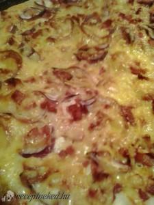 Hozzávalók: 2db nagyobb krumpli 50 dkg liszt 1dl tej 1 dl víz 2,5 dkg élesztő 50 dkg kockázott bacon szalonna 2 db lilahagyma 1 kis pohár tejföl egy kevés fokhagymakrém 10-15 dkg sajt Elkészítése: Megfőzöm a krumplit, amit főzés után összetörök és hagyom kihűlni. Ha kihűlt hozzá adom a lisztet és jól elkeverem. A tej […]