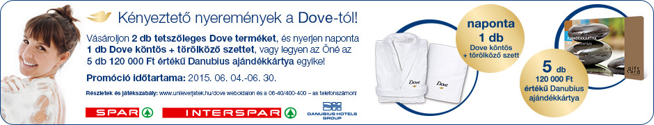 Vásárolj az Unilever Magyarország Kft. által forgalmazott Dove termékek közül 2 darabot a magyarországi SPAR csoport üzleteiben!