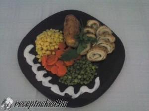Hozzávalók: Húshoz: egy csirkemell 15 dkg sajt 15 dkg vaj egy csokor petrezselyem só bors Panírozáshoz: liszt tojás zsemlemorzsa Körethez: 30 dkg zöldborsó 30 dkg sárgarépa 20 dkg kukorica Elkészítése: A csirkemellet vékony szeletekre szeljük, majd kissé kiklopfoljuk. Sózzuk, borsozzuk, majd kicsit állni hagyjuk. Eközben elkészítjük a tölteléket. A vajat puhára olvasztjuk (ne folyósra!), de […]