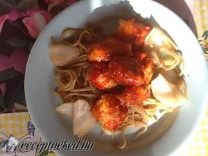 Hozzávalók: 1 csirkemellfilé 7 ek búzaliszt 1 tojás 1/2 cs sütőpor 7 ek kukorica keményítő kevés víz só bors olaj 7 ek ketchup ízlés szerint chili szezámmag méz 1 csomag (500 g) spagetti kb 125-150 ml szójaszósz 0,5 dl olaj Elkészítése: A keményítőt, a lisztet, a tojást, a sütőport és a vizet összekeverem és palacsintatészta […]