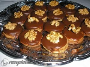 Hozzávalók: A tésztához: 15 dkg finomliszt 15 dkg darált mogyoró 1 teáskanál sütőpor 15 dkg cukor 1 csipet só 1 darab tojás 1/2 teáskanál őrölt fahéj 10 dkg puha vaj Továbbá: 25 dkg sárgabaracklekvár 15 dkg étcsokoládé tortabevonó 48 db fél dióbél Elkészítése: A tészta hozzávalóit egy robotgép táljába tesszük, és összedolgozzuk, majd egy órára […]