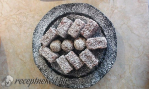 Hozzávalók: Tészta: 35 dkg liszt 25 dkg porcukor 5 dkg zsír vagy margarin 2 tojás 2 dl tej 2 evőkanál méz 1 kávéskanál szódabikarbóna Máz: 20 dkg margarin 25 dkg porcukor 6 evőkanál tej 4 dkg kakaó 5 evőkanál rum Forgatáshoz: 2 csomag kókuszreszelék Elkészítése: A cukrot a tojással és a margarinnal kikeverjük fehéredésig. Hozzákeverjük […]